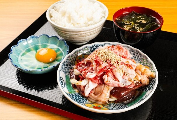 ・焼肉前菜5種 ・厚切タン塩 ・内臓ホルモン盛合せ(塩) ・和牛ミックスカルビ全部位盛合せ ・石焼ビビンバ ・おとうふサラダ ・特選バラカルビ ・厚切和牛ハラミステーキ ・喜どや風もつ煮込み ・ミルク杏仁豆腐